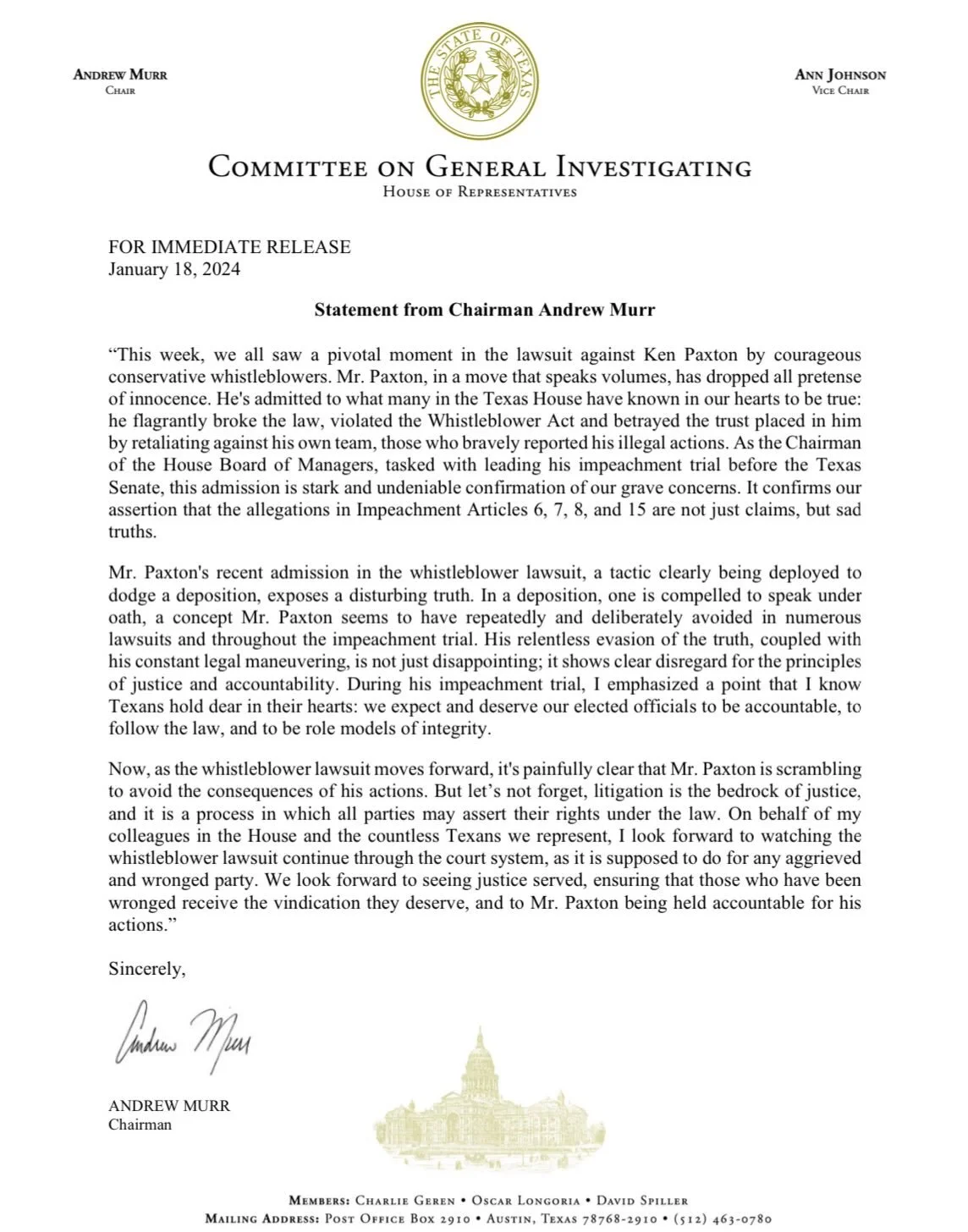 the Wall of SHAME View this post on Instagram A post shared by Y’all-itics (@yallitics) “3 key takeaways from nearly 4,000 pages of evidence against Ken Paxton” - KERA News “Angela Paxton’s Ties to a Shell Company”-Texas Observer “Lucrative Contract Examined by Investigators in Texas AG Ken Paxton Impeachment Trial”-Dallas Morning News “FBI arrests businessman linked to impeachment of Texas AG Ken Paxton”-NBC “Paxton’s Ninth Life: Will the Senate Save Texas’ Embattled AG?”-Texas Observer “6 people are charged in a Texas elections investigation involving ‘vote harvesting’”-AP “Nate Paul, the businessman at the center of Ken Paxton’s impeachment, charged with four new federal crimes”-Texas Tribune “The Texas Legislature Finally Comes for Ken Paxton”-Texas Monthly “AG Ken Paxton goes all out for wife's campaign, loans her $500,000”-Chron “Texas AG Ken Paxton sues Houston immigrants’ rights org over political speech”-Texas Tribune ”Best & Worst Legislators in Real Time: Senator Angela Paxton, for Filing Legislation That Could Directly Benefit Her Indicted Husband”-Texas Monthly “The Greatest Sideshow on Earth: Behind the Scenes of Ken Paxton’s Acquittal”-Texas Monthly “Ken Paxton faces securities fraud charges and an impeachment trial. Here’s why”-KERA News “Paxton trial, Sept. 13: Woman in alleged affair with Paxton planned to plead the Fifth, doesn’t testify”-Texas Tribune “Timeline: Allegations against Texas AG Ken Paxton through the years”-Houston Chronicle “Paxton impeachment trial rife with possible conflicts of interest”-Axios Dallas “The Billionaire Bully Who Wants to Turn Texas Into a Christian Theocracy”-Texas Monthly “Impeachment Investigators Look Into Texas Attorney General’s Real-Estate Spree”-Wall Street Journal “Love Those Houston Lawyers. But It’s Time for Impeached Texas AG Ken PaxtonTo Quit”-Forth Worth Star-Telegram “AG Ken Paxton has bought several properties worth millions. He’s yet to publicly disclose them.”-KUT “Texas AG Ken Paxton tapped campaign for $2.3 million in impeachment legal fees”-Dallas Morning News “Texas Has a Perverse Idea of Religious Freedom”-New York Times “Judge awards $6.6 million to whistleblowers who reported Texas Attorney General Ken Paxton to FBI”-AP “Texas GOP lawmaker says Attorney General Ken Paxton is a flight risk”-WFAA “Bills to fight Texas AG Ken Paxton’s whistleblower case top $700K, records show”-KUT “Paxton looks to dismiss securities fraud charges, says ‘right to speedy trial’ was violated”-KXAN “‘The Senate Got Played’: Drew Springer Explains His Call To Reopen Ken Paxton’s Impeachment”-Texas Monthly “Texas AG Ken Paxton guarantees $2M loan to state senate campaign of his wife, Angela Paxton”-Dallas Morning News “Texas politicians must disclose known blind trust properties, rental income details”-KUT News “Why Ken Paxton Got a Deal”-Reform Austin “Texas AG Ken Paxton's primary endorsements fail to topple Collin County incumbents Tuesday”-KERA News “Judge denies Texas’ attempt to shut down El Paso migrant shelter”-Texas Tribune “Far-right billionaires throw money at Republican primary to weed out enemies of AG Paxton”-Austin American-Statesman “Paxton Threatens Election Officials With Prosecution”-Austin Chronicle “Judge calls AG Ken Paxton’s demands ‘rude,’ ‘unprofessional’, suggests ulterior political motives”-KTSM “Texas Supreme upholds jail time order for Austin investor at center of Paxton impeachment”-San Antonio Express-News “Texas AG Ken Paxton could see criminal charges dropped in deal with prosecutors”-Austin American-Statesman “How the criminal case against Texas AG Ken Paxton abruptly ended after nearly a decade of delays”-AP “Greg Abbott and Ken Paxton join forces to shut down Plano mosque's project”-Chron “The Law Came for Ken Paxton. Then It Turned and Ran Away.”-Texas Monthly “Whistleblowers: Texas Supreme Court must reject Ken Paxton's 'scheme' to delay depositions”-Austin American-Statesman “Texas AG Ken Paxton was acquitted at his impeachment trial. He still faces legal troubles”-AP “Ken Paxton Managed to Delay His Trial on Securities Fraud Charges for Eight Years. Now It’s Coming Home to Roost.”-Texas Monthly “Paxton impeachment trial begins in the Texas Senate”-NPR “AG Ken Paxton goes all out for wife's campaign, loans her $500,000”-Chron “Ken Paxton’s former personal assistant and ‘second son’ a star witness in impeachment probe”-Texas Tribune “Angela Paxton, Lauren Boebert are not role models”-San Antonio Express-News “Texas Attorney General Ken Paxton pursued perks beyond impeachment allegations, ex-staffers say”-AP “Sen. Angela Paxton files bill that would allow her husband, Texas Attorney General Ken Paxton, to issue exemptions from securities regulations”-Texas Tribune “Woman with whom Texas Attorney General Paxton is said to have had an affair expected to testify at impeachment”-PBS “Indicted Attorney General Ken Paxton Epitomizes Texas’ Exceptionalism on Corruption”-Texas Observer “Paxton Amends Ethics Disclosures”-Texas Tribune “Appeals court rules lawsuit seeking Jan. 6 emails from Texas governor, attorney general can move forward”-Texas Tribune “Why Ken Paxton Was Acquitted: Texas Republicans in Austin risk becoming the Albany Democrats”-Wall Street Journal “Texas Attorney General Ken Paxton breaks silence on out-of-state properties”-KUT “AP Sources: FBI is investigating Texas attorney general”-AP ”Paxton's securities fraud case ends with an embarrassing whimper”-San Antonio Express-News “Why couldn’t AG Ken Paxton sit for a deposition? A multicity trip to Europe, records show”-Dallas Morning News “Ken Paxton Thinks He’s Found the Cause of Our Growing Stupidity: Fluoridated Pokémon Toothpaste”-Texas Mont
